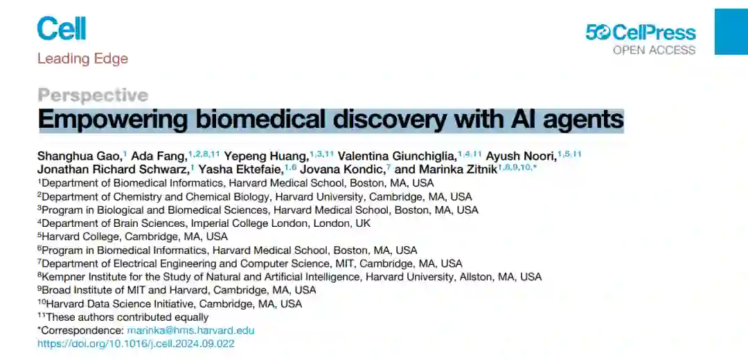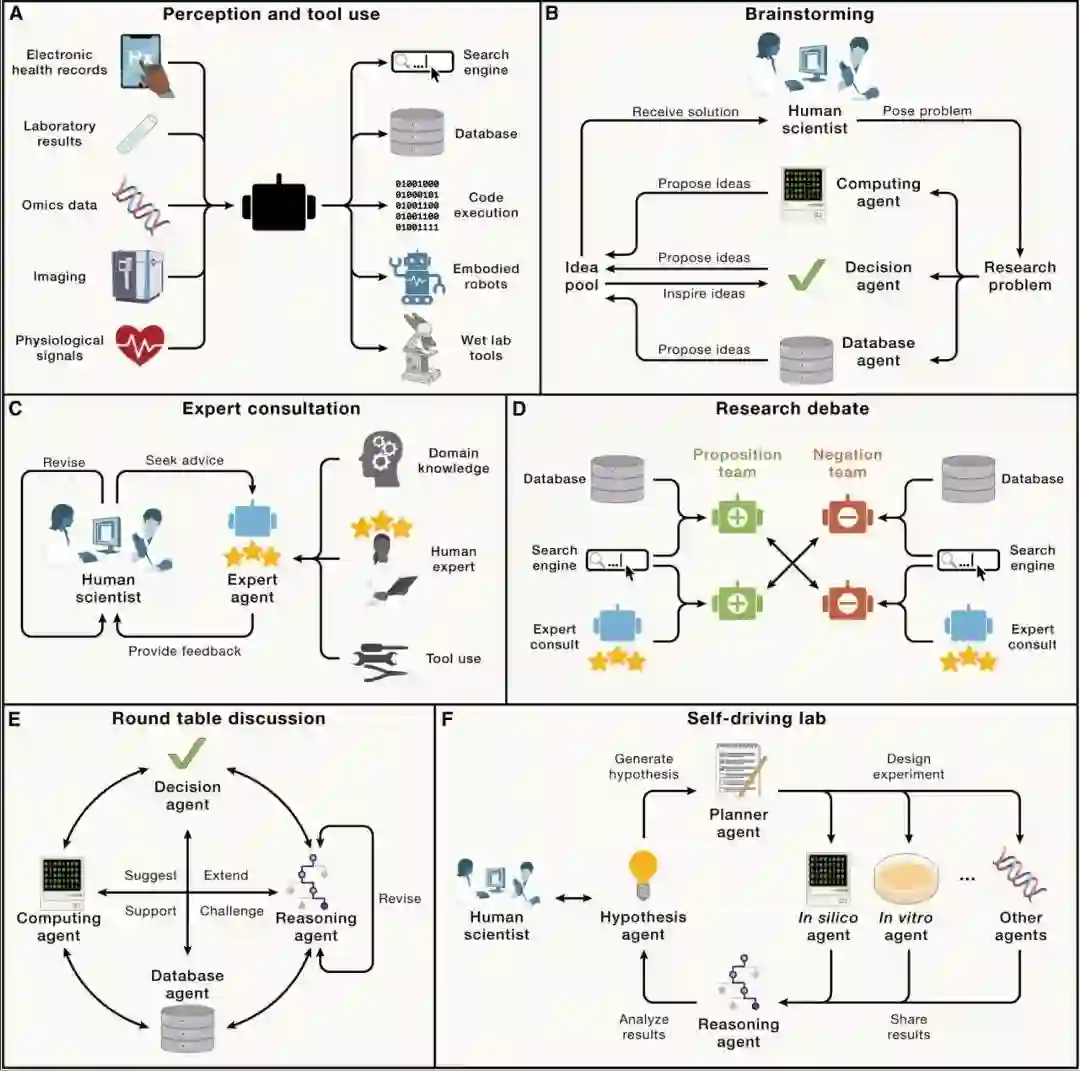我们设想的“AI科学家”是具备批判性学习与推理能力的系统,通过整合AI模型、生物医学工具与实验平台的协作智能体,来推动生物医学研究的发展。与其在发现过程中排除人类,生物医学AI智能体将人类的创造力和专业知识与AI在大数据分析、假设空间探索和执行重复任务方面的能力相结合。AI智能体有望精通各种任务,能够规划发现流程并进行自我评估,以识别并弥补知识空白。这些智能体使用大语言模型和生成模型来构建结构化记忆,支持持续学习,并通过机器学习工具整合科学知识、生物学原理和理论。AI智能体可影响从虚拟细胞模拟、表型的可编程控制、细胞回路设计到新疗法开发等多个领域。https://www.cell.com/cell/fulltext/S0092-8674(24)01070-5