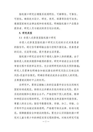 来源:科学技术部 时间:2024-02-18 14:22:48 作者: 日前,中国科学技术部在官方网站发布《脑机接口研究伦理指引》(以下简称“《指引》”),以供相关科研机构和人员参考。这是中国首次专门编制关于脑机接口研究的伦理指引文件。 脑机接口(Brain-computer interfaces,BCIs)是各国重点布局的前沿技术之一。随着相关研究的逐渐增多和产品的日趋成熟,脑机接口研究的伦理问题开始受到关注。 《指引》对脑机接口技术中的术语和技术分类做了明确的界定与划分,澄清了伦理审查工作中可能遇到的概念模糊。《指引》还提出脑机接口研究的六项基本原则,分别是保障健康、提升福祉;尊重被试、适度应用;坚持公正、保障公平;风险管控、保障安全;信息公开、知情保障;支持创新、严格规范。 具体内容如下