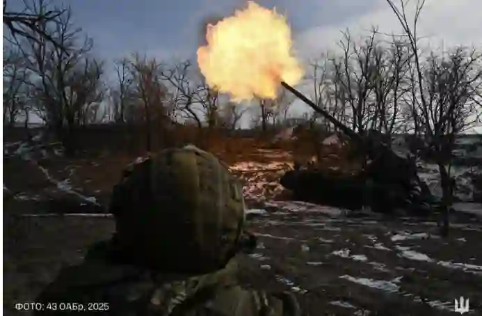 在第43旅服役的2S7 Pion向目标发射炮弹。尽管缺乏持久的ISTAR,但火炮的射程使它们能够对俄罗斯部队进行早期和猛烈的打击。(乌克兰国防部)