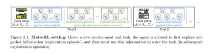 从零开始的强化学习通常需要大量样本来学习复杂任务,但是许多真实世界的应用场景却只需要从少量样本中进行学习。例如,一个有效的新闻推荐系统必须能够在仅观察到少量推荐结果后,适应新用户的口味。为了满足那些需要快速学习或适应新任务的应用的需求,本论文专注于元强化学习(meta-RL)。具体来说,我们考虑的场景是,智能体会反复接触到一些来自相同任务族的新任务。智能体必须在极少的尝试中学会每个新任务,这被形式化为与任务交互的几个阶段。智能体如何利用这些少量尝试至关重要,因为这决定了它是否能够随后解决任务,但学习如何有效使用这些尝试是具有挑战性的,因为这里没有直接的监督。