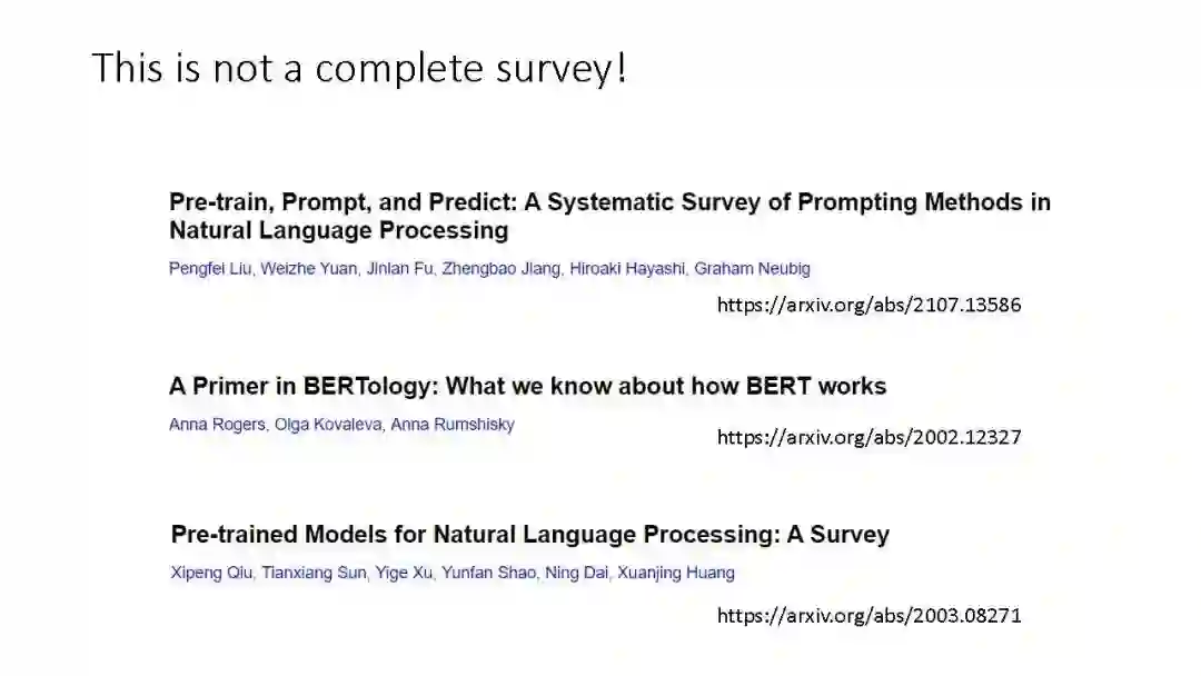 近年来,基于深度学习的自然语言处理(NLP)已经成为主流研究,比传统方法有了显著改进。在所有深度学习方法中,在感兴趣的下游任务上微调自监督预训练语言模型(PLM)已经成为NLP任务中的标准流程。自ELMo (Peters等人,2018年)和BERT (Devlin等人,2019年)于2018年提出以来,从PLM微调的模型在各种任务中占据了许多排行榜,包括问答、自然语言理解、自然语言推理、机器翻译和句子相似度。除了将PLM应用于各种下游任务之外,许多人一直在深入了解PLM的属性和特征,包括PLM表示中编码的语言知识,以及PLM在预训练期间获得的事实知识。虽然PLM第一次被提出已经三年了,但与PLM相关的研究并没有衰退的迹象。