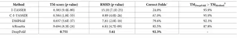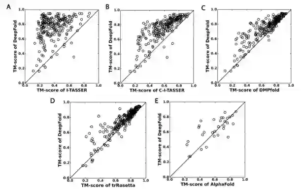图6.DeepFold与其他蛋白质结构预测方法的TM得分对比