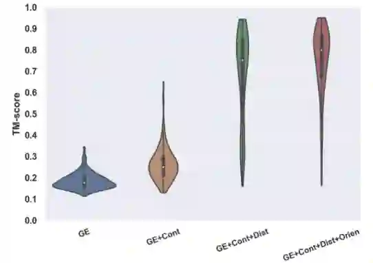 图4.不同的空间约束对DeepFold建模精度的贡献