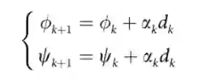 在DeepFold中,蛋白质结构由其主链原子(N, H, Cα,C和O)、Cβ原子和侧链质心确定。初始构象是由ANGLOR通过一个小的神经网络预测的骨干扭转角(φ,ψ)生成的。采用L-BFGS进行构象搜索模拟,对骨架扭转角进行优化。L-BFGS是一种基于梯度下降的优化方法。在每一步k处,模拟的搜索方向dk由下式确定: