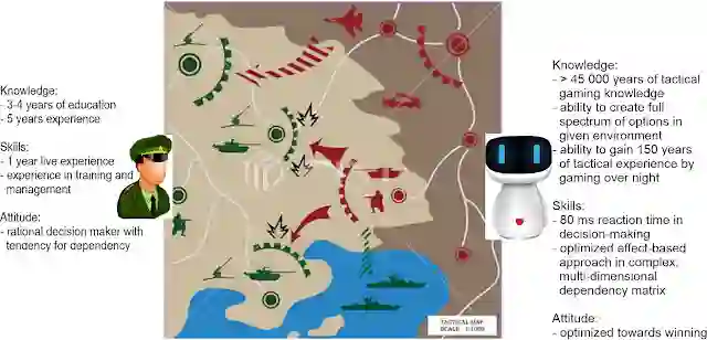 在未来战场的战术场景中,当一名人类指挥官与一名前机械人上尉相遇时,作战双方的决策能力可能会有所不同。在兵力相等、条令一致、战场相当稳定的情况下,连长不可能战胜前机械人。而富有创造力的人类指挥官则可能在更加混乱的条件下,通过创新战术获得优势。我们的军事院校在培养敏捷型军官吗?不过,在《Dota 2》战略游戏中,较高的人机协作表现还是值得肯定的,但这还有待今后的文章进行研究。