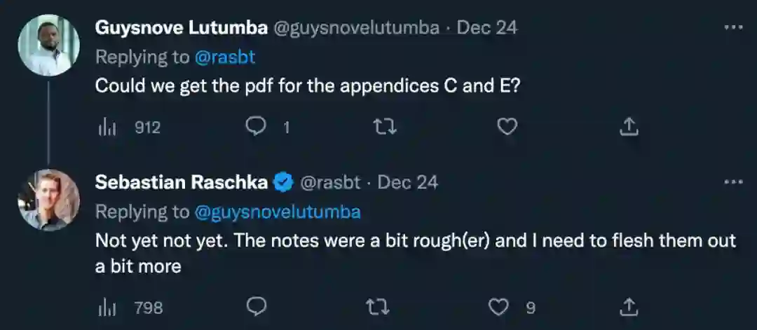 Sebastian Raschka 表示,目前附录 C 和附录 E 的内容还在整理中,访问链接尚未公布,读者需要稍加等待。