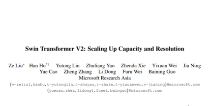 本文提出一种升级版SwinTransformerV2,最高参数量可达3 Billion,可处理尺寸图像。通过提升模型容量与输入分辨率,SwinTransformer在四个代表性基准数据集上取得了新记录:84.%@ImageNetV2、63.1 box 与54.4 max mAP@COCO、59.9mIoU@ADE20K以及86.8%@Kinetics-400(视频动作分类)。