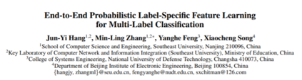 End-to-End Probabilistic Label-Specific Feature Learning for Multi-Label Classification Jun-Yi Hang, Min-Ling Zhang, Yanghe Feng , Xiaocheng Song
