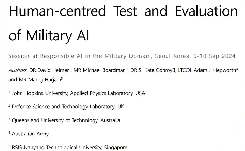 本会议总结报告强调了国防中人机协作测试与评估(T&E)的必要性,并提供了对相关挑战的理解,特别是测量和测试协议。会议将帮助与会者在各自领域开展富有成效的工作,尤其是在技术、操作和政策领域架起沟通的桥梁。