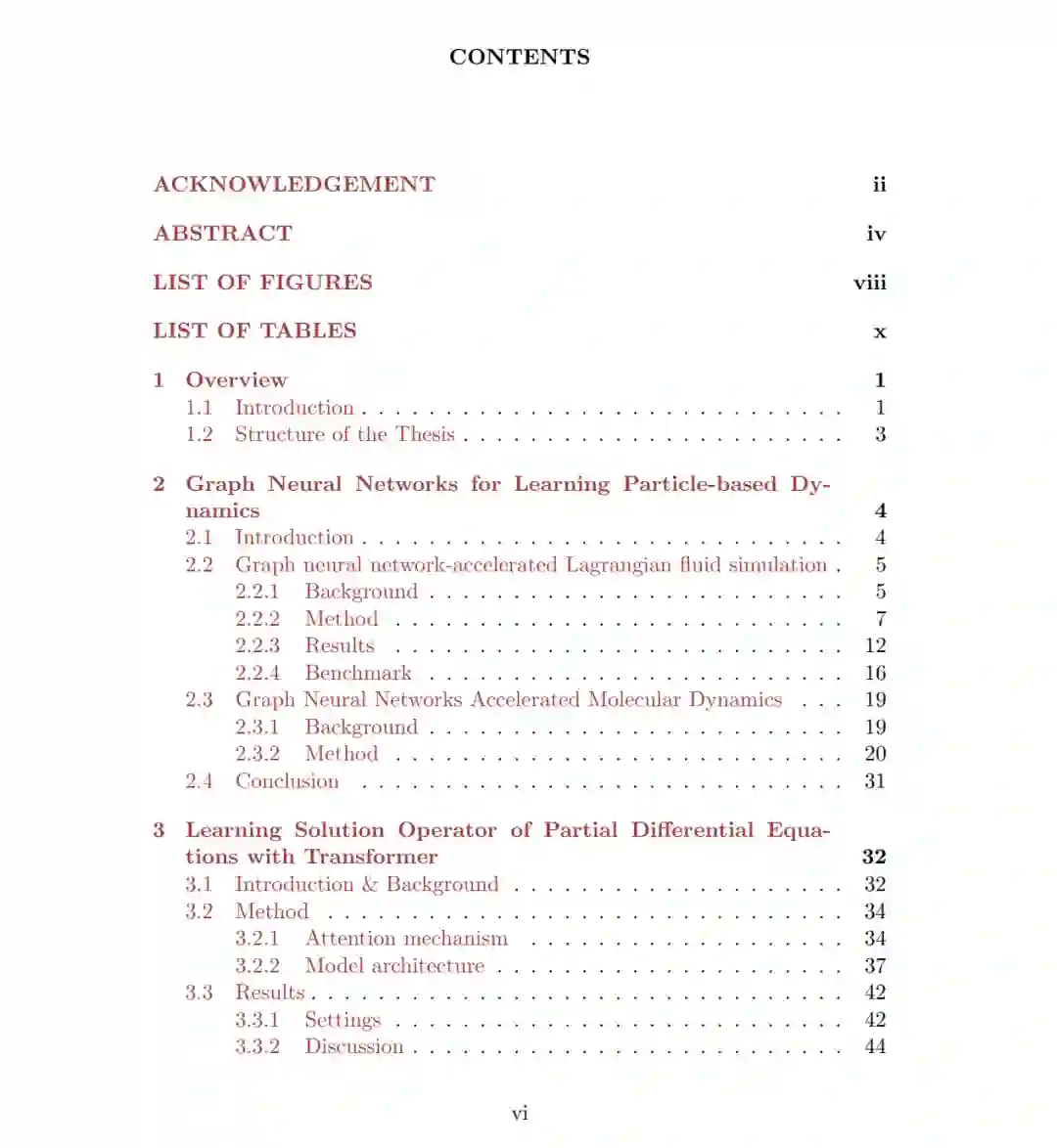 在本论文中,我们探讨了开发和构建基于神经网络的模型,以对多种物理系统进行准确且高效预测的努力。我们首先介绍 Fluid Graph Networks (FGN) 和 Graph neural networks-Accelerated Molecular Dynamics (GAMD),这两种基于消息传递神经网络参数化的数据驱动模型,可用于高效的基于粒子的系统模拟。随后,我们提出了一系列基于 Transformer 的模型,用于建模包括湍流流动和全球天气动力学在内的多种物理现象。其一是 Operator Transformer (OFormer),采用 Transformer 编码器-解码器框架,能够灵活地适用于不同的离散化方式。为了提高 Transformer 在高维问题上的可扩展性,我们进一步提出了一种轴向分解注意力机制(axial factorized attention),显著降低了高维网格相关的计算成本。接着,我们将该分解注意力机制扩展到球面上,用于准确且高效的全球天气预报。最后,我们提出了一种生成式神经 PDE 求解器,借鉴了扩散概率模型的最新进展,以提高湍流时变系统模拟的鲁棒性。