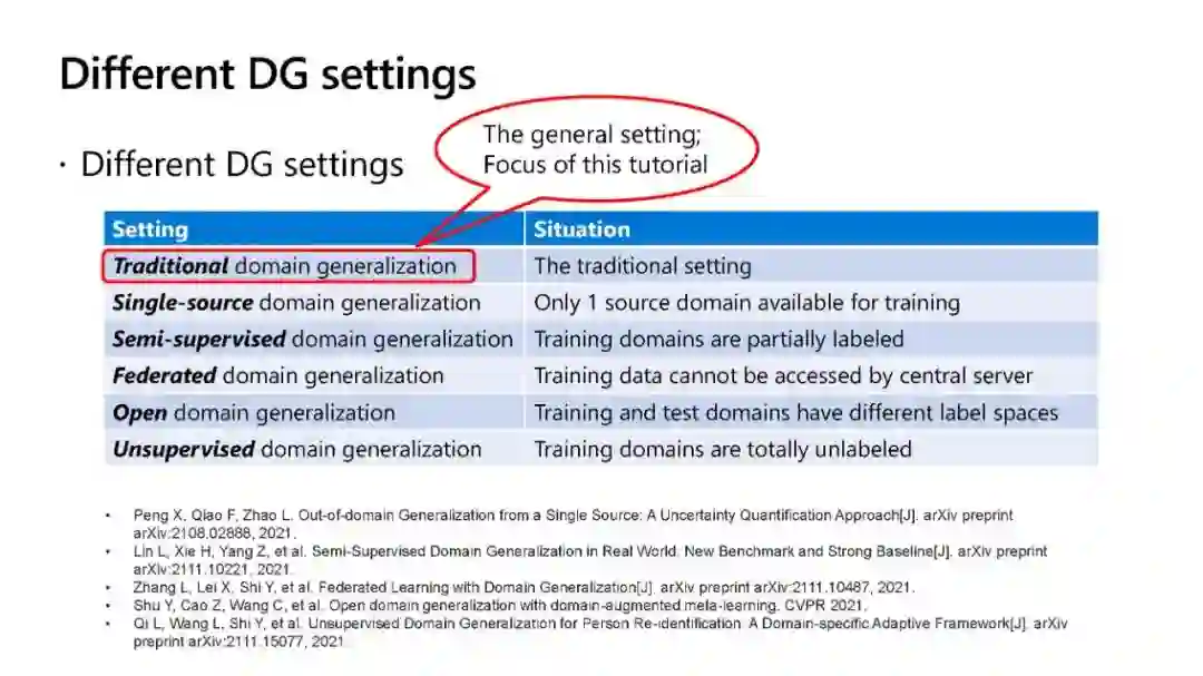 表1:领域泛化与其它相关学习范式对比