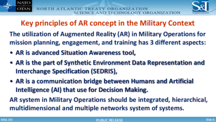 《增强现实技术在军事行动中的应用》MSG-192 第17届 "在北约和国家使用的商业技术和游戏 "研讨会