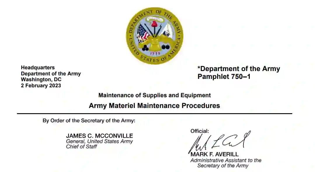 本手册概述了日常维护作业所需的各种维护主题。本手册提供指导、帮助和程序,支持陆军部队两级分配维护任务。本手册可帮助师级及以下级别的指挥官、参谋人员、领导和士兵达到并维持 AR 750-1 中规定的陆军配属和附属装备维修标准。
