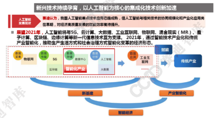 2017至2019年,连续三年的政府工作报告中均提及加快人工智能产业发展;2020年,人工智能更是与SG基站、大数据中心、工业互联网等一起被列入新基建范围。在 “新基建“ 背景下,人工智能将为智能经济的发展和产业数字化转型提供底层支撑, 推动人工智能与SG、云计算、大数据、物联网等领域深度融合。