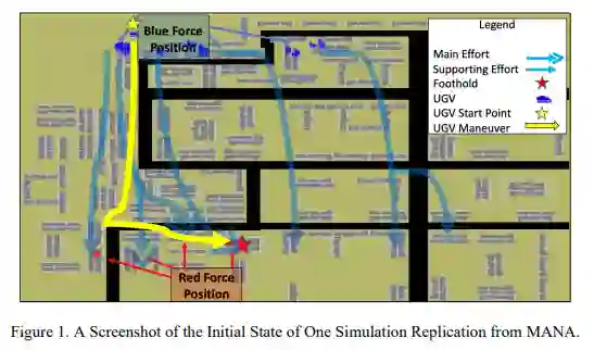 近年来,各国军队加强了整合无人驾驶技术的工作,以提高有人驾驶-无人驾驶团队(MUM-T)的能力。由于一些国家的战斗年龄人口正在减少,军队正在转向容易获得的、具有成本效益的和复杂的无人驾驶技术。MUM-T拥有巨大的潜力,不仅可以缓解军队的人力短缺,还可以提高作战能力。这篇论文研究了MUM-T在前线的有效性,具体到步兵小组支持城市地形的进攻行动。一个基于智能体的仿真被用来模拟有无无人驾驶地面车辆(UGV)支持一个步兵连MUM-T作战行动。对超过76,800次的模拟战斗进行了分析。据观察,MUM-T概念可以极大地提高战斗力,通过增加敌人的伤亡来评估。还观察到UGV的重装时间、武器精度和自身的力量结构对步兵的杀伤力和生存能力有很大影响。这项分析的结论是,在小单位战术层面实施MUM-T对提高整体作战性能有很大潜力。未来,作战模型可以被整合到未来的军事演习中,这样就可以对模拟的结果进行验证和确认。