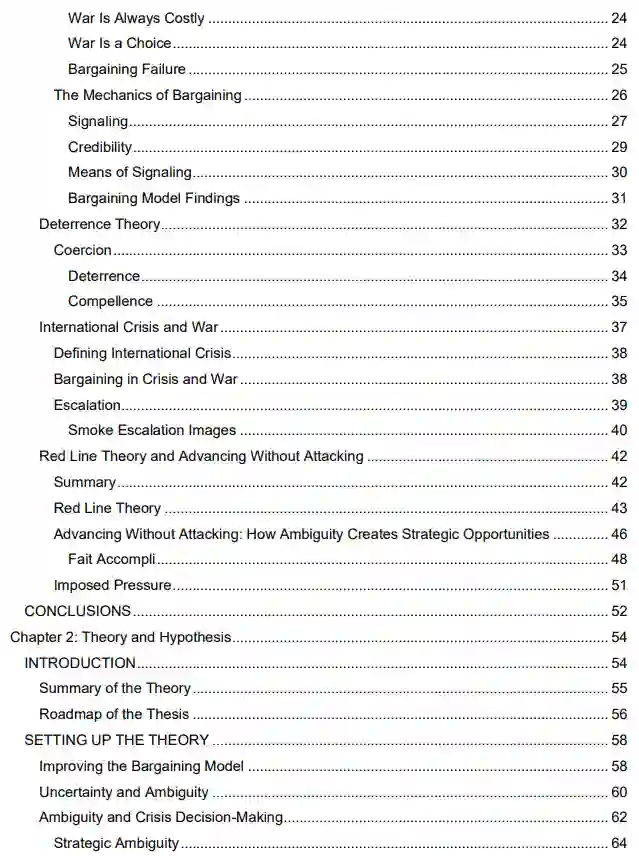 本文提出的理论采用了后一种方法,旨在扩展战争的讨价还价模式来解释这些情况,而不是完全废除这种方法。所需的主要修改是证明信号传递是国家讨价还价的众多机制之一。在第二章中,我提出了另一种危机模式,即国家在危机升级过程中利用模糊性推进。我将这种模式称为混合升级。