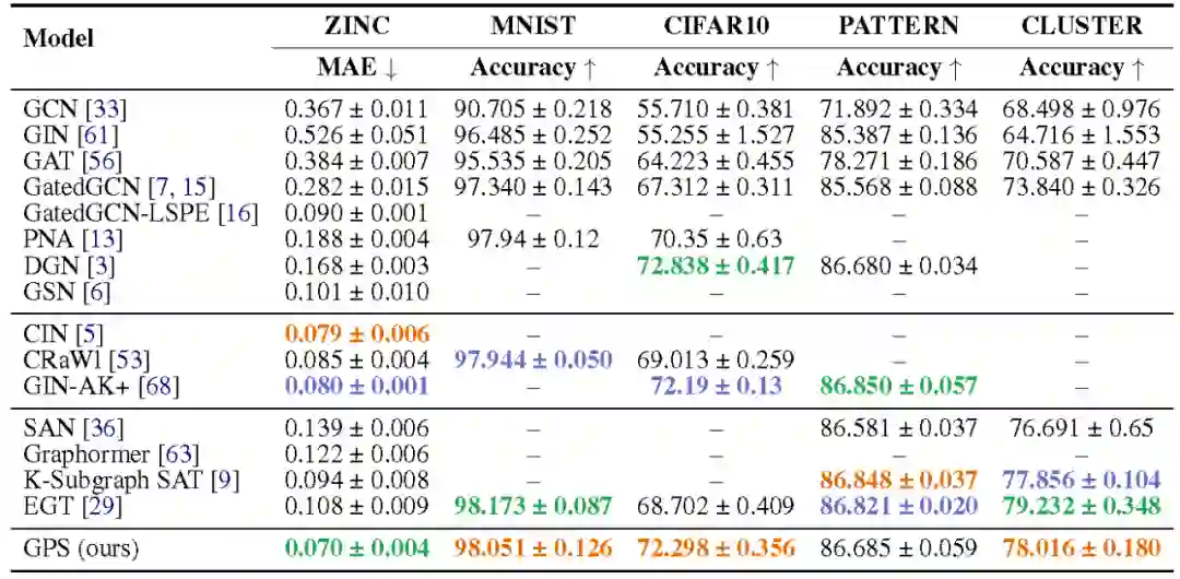 下图是模型在图回归和图分类任务上的效果。 使用GNN抽取结构信息后,再用Transformer学习特征,由下图可以看出,Transformer可以增强GNN的性能。