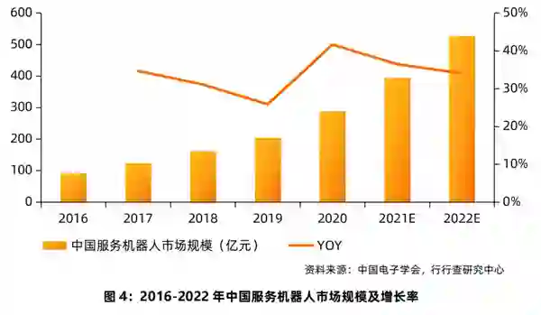根据中国电子学会发布的《中国机器人产业发展报告(2021年)》(以下简称《报告》)显示,2021年我国机器人市场规模预计达到839亿元,其中工业机器人市场规模约为445.7亿元,占比为53.1%;服务机器人市场规模约为393.3亿元,占比为46.9%。而在服务机器人市场中,公共服务机器人及个人/家用服务机器人的市场规模预计达302.6亿元,占总市场规模的36.1%;特种机器人市场规模约为90.7亿元,占总市场规模的10.8%。