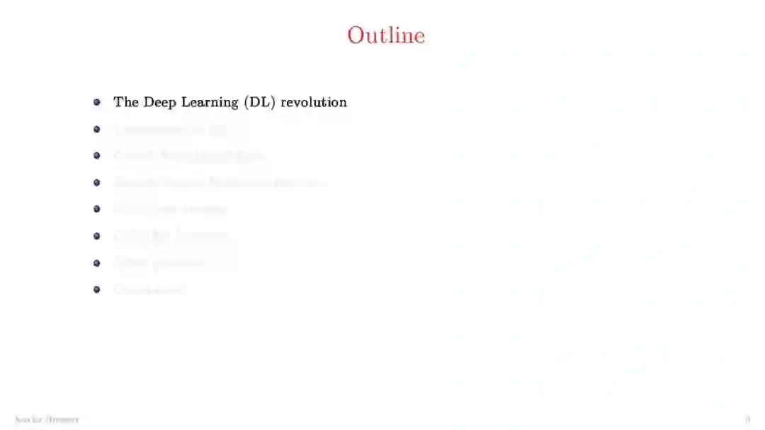 来自新加坡国立大学Xavier Bresson讲述图机器学习课程,The Deep Learning (DL) revolution Limitations of DL Graph-Structured data Graph Neural Networks (GNNs) GNN case studies GNN for industry GNN libraries Conclusion