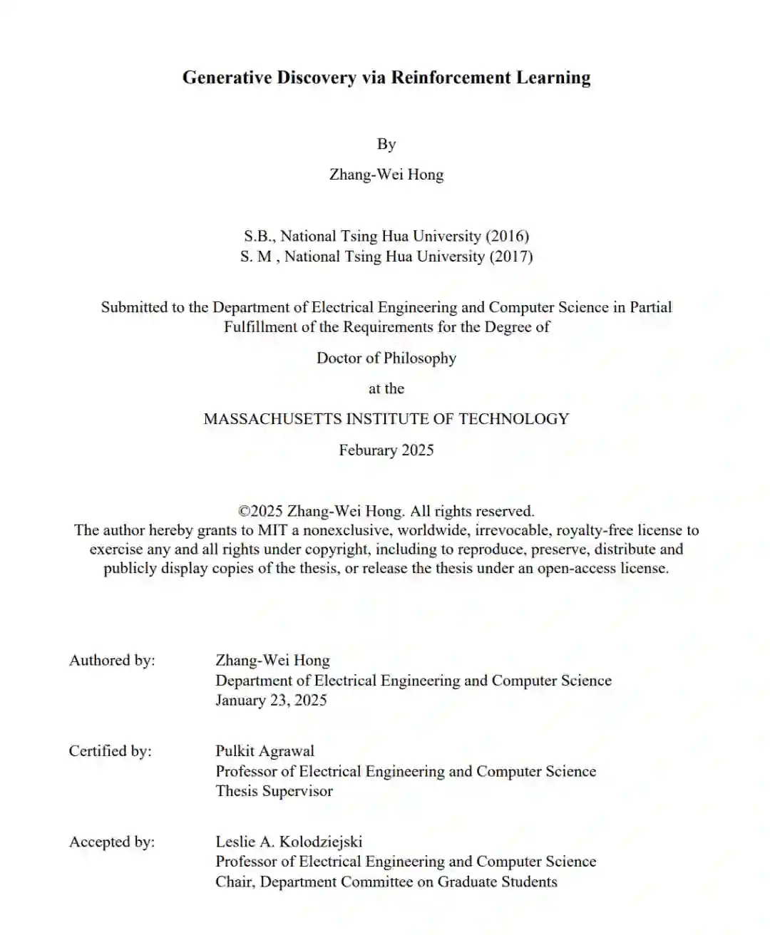 发现新知识对于技术进步至关重要,这反映了人类和动物学习新技能的方式——通常是通过试错。例如,远古人类通过尝试不同方法发现了火的使用;儿童则通过反复尝试和失败学会了走路和使用工具。在化学领域,科学家通过测试各种成分组合来发现新型催化剂。但人类究竟是如何利用试错来改进现有解决方案的(比如找到更高效的行走方式,或合成全新化合物)?我们能否设计出能够模仿甚至超越人类发现能力的计算模型?这类计算模型有望极大加速科学与工程领域的进展,因为它们可以自动化或辅助科学家和工程师的工作,并更高效地发现新知识(例如发现新化合物、简化机器人控制器设计等)。 强化学习(Reinforcement Learning, RL)非常适合用于发现任务,因为它使机器能够通过试错进行学习。我的研究克服了当前RL算法的一个主要局限,从而提升了其在知识发现方面的潜力: 1. 缓解奖励塑形(reward shaping)的偏差。