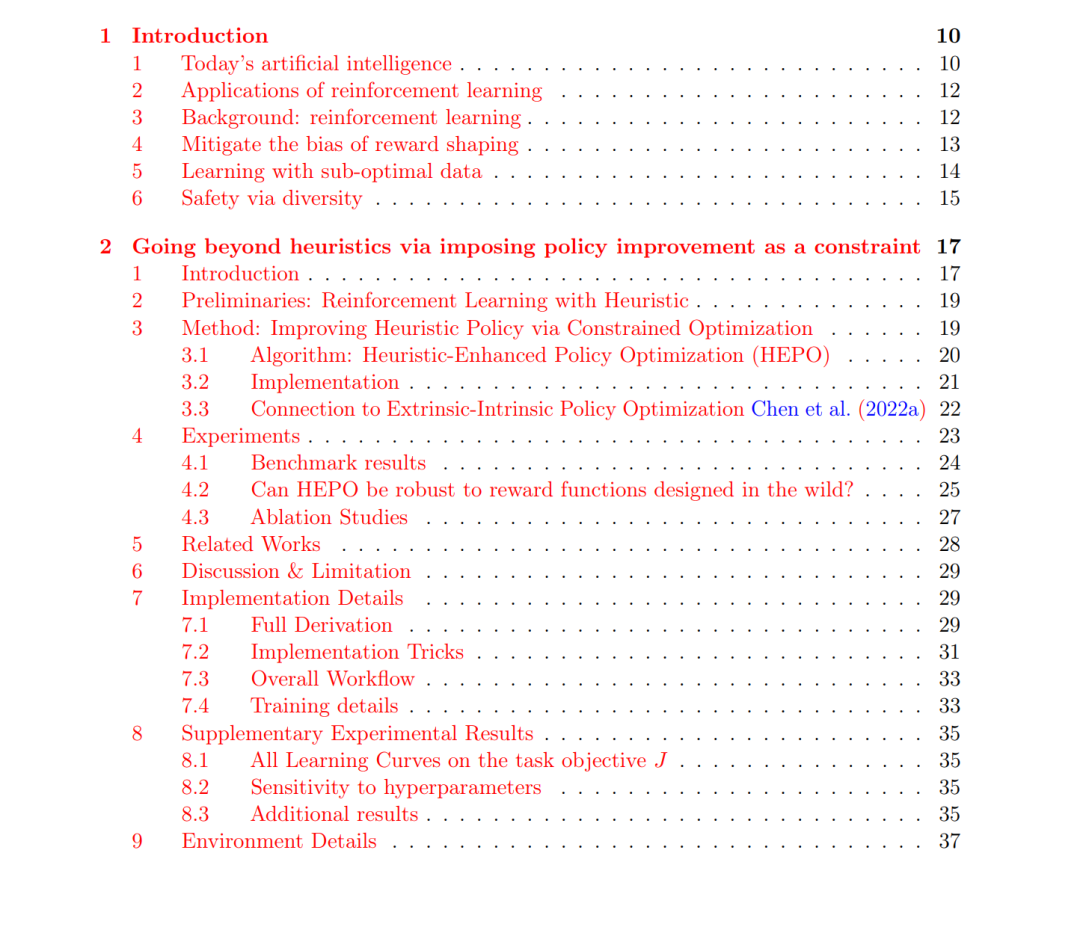 RL依赖于从试错经验中获得的奖励信号,但这些信号往往是稀疏的——即仅在找到理想解决方案时才给予奖励,其他情况下奖励为零。因此,大多数尝试几乎无法提供有效反馈。为应对稀疏奖励问题,一个常用策略是提供额外的提示(即奖励塑形)来引导RL算法。然而,如果这些提示不准确,反而会将算法引向比不使用提示更差的解决方案。我提出了一种新的RL框架,该框架可与任意标准RL算法结合,确保在使用提示进行训练时能获得更优解,而非损害性能。 2. 利用次优数据进行学习。