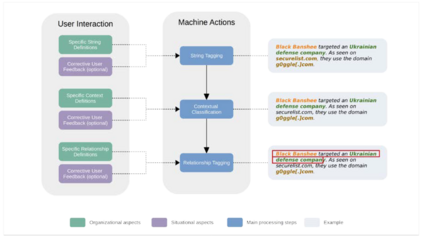 越来越多的网络安全专家、公司和业余爱好者形成了一个社区,他们倾向于公开分享他们从恶意软件和攻击分析中获得的关于网络威胁的知识。在网络安全方面,这种类型的知识通常被称为网络威胁情报(CTI)。不幸的是,它通常以自然语言文本的形式提供,例如博客文章或PDF报告。为了使其可用于自动化安全措施或信息共享平台,必须将其转换为机器可读的格式,最好是通过一个基本自动化的过程。已经发表了不同的方法来解决这个问题。然而,它们都不是真正面向用户的,这在CTI领域是至关重要的,因为信息对情报状态的宣告在很大程度上取决于它在具体行动中的应用。考虑到这一差距,我们提供了一个基于理论的问题模型,它反映了由个别情报定义所产生的特定领域的用户需求。然后,我们使用这个模型来实现一个技术解决方案,利用一套强有力的定制技术,以及用户友好的界面进行直接互动。
