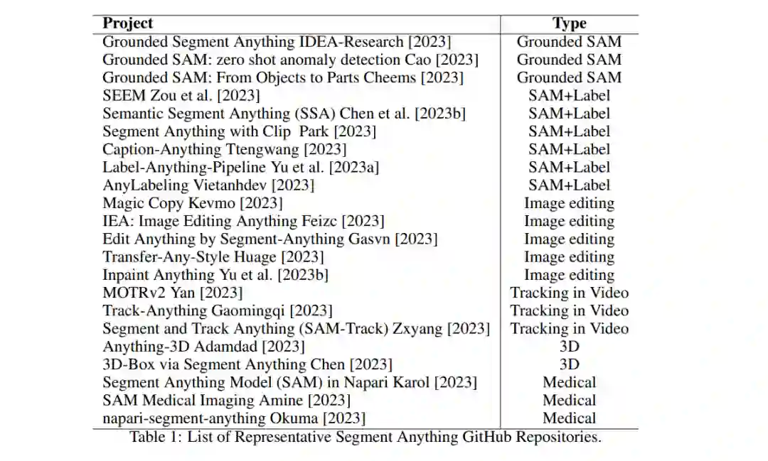 SAM (自监督联想记忆)在“分割任何事物”方面的成功激励了社区去研究"X 任何事物"。具体来说,SAM已经在许多项目中表现出了其多功能性,当与其他模型结合使用时,可以实现令人印象深刻的性能。