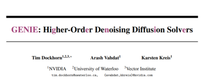 去噪扩散模型(DDMs)已经成为一种强大的生成模型。正向扩散过程会缓慢地扰动数据,而深度模型则学会逐渐去噪。合成相当于求解由学习的模型定义的微分方程(DE)。为了获得高质量的生成,求解DE需要缓慢的迭代求解器。在这项工作中,我们提出了高阶去噪扩散求解器(GENIE):基于截断泰勒方法,我们推导了一种新的高阶求解器,它显著加速了合成。我们的求解器依赖于受扰数据分布的高阶梯度,即高阶分数函数。在实践中,只需要雅可比向量积(JVPs),本文建议通过自动微分从一阶分数网络中提取它们。然后,我们将JVP提取到一个单独的神经网络中,使我们能够在合成过程中高效地计算新采样器所需的高阶项。我们只需要在一阶分数网络上训练一个额外的小头部。我们在多个图像生成基准测试上验证了GENIE,并证明了GENIE优于所有以前的求解器。与最近从根本上改变DDMs中的生成过程的方法不同,GENIE解决了真正的生成DE,并仍然支持编码和引导采样等应用。项目页面和代码:https://nv-tlabs.github.io/GENIE。