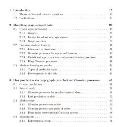 图是简单而强大的数据结构,通过节点和边描述实体及其相互关系,使其成为模拟各种实际对象(从分子到社会或生物网络)的流行候选者。由于其适用于各种建模场景,基于图形状数据的机器学习在过去几年中已成为一个重要的研究领域。虽然与机器学习模型结合时非常强大,但图在提出独特挑战方面也具有其特性,这些模型需要能够适应不仅数据高度多样化,而且图域也可能在大小、连通性模式及其与节点特征的交互等方面变化。在这项工作中,我假设高斯过程——一类贝叶斯非参数模型,特别适合于图域上的数据建模。 为了证明这一假设,我通过推导适用于图数据的高斯过程模型来展示贝叶斯非参数建模的优点,这些模型适用于图机器学习中三个最重要的任务:链接预测、图级预测和节点级预测。结果模型展示了许多优势,包括良好的模型拟合和由于其非参数性质而对过拟合的强大抵抗力,以及校准良好的不确定性估计。此外,高斯过程优化超参数的能力允许设计适应图特定特征的模型,例如图信号的平滑性和多尺度结构或特征的局部性。这些提议模型的优势,特别是与一系列基线模型相比的竞争性能,已在广泛的实际数据集上的大量实验中得到证实。