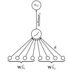 GCN通过图的拉普拉斯矩阵来聚合邻居节点的特征信息,这种方式和图本身的结构紧密相关,这限制了GCN在训练时未见的图结构上的泛化能力。GAT利用注意力机制来对邻居节点特征加权求和,从而聚合邻域信息,完全摆脱了图结构的束缚,是一种归纳式学习方式。 GAT中的attention是self-attention,即Q(Query),K(Key),V(value)三个矩阵均来自统一输入。和所有的Attention机制一样,GAT的计算也分两步走: 1. 计算注意力系数。