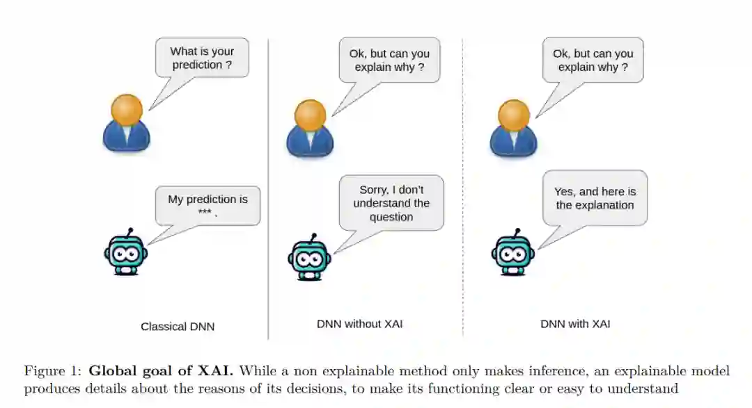 深度神经网络(DNNs),即具有大量可训练参数的网络,近年来对计算机视觉领域产生了重大影响【1】。它们在语义分割【2】、分类【3】和图像生成【4】等各种任务中取得了最先进的性能。然而,DNN的深度和复杂性也导致了决策过程和预测可解释性的缺乏透明度【5】【6】。在那些性能和可解释性都至关重要的高风险环境中,对透明度的需求日益增加【7】。为了增强透明度和可解释性,广泛采用的各种方法被统称为可解释人工智能(XAI)【8】(见图1)。 XAI方法为自动化系统与人类用户之间搭建了桥梁,因为人类的感知和解释本质上是主观的。满足一个用户需求的解释可能并不一定能满足另一个用户【9】。因此,为了提高有效性,XAI方法应确保不同用户之间的解释一致性【10】。XAI引起了越来越多的关注,尤其是在伦理问题至关重要的领域,例如医疗诊断【11】和自动驾驶【12】。因为不透明的模型可能隐藏与道德原则相悖的功能。例如,在【13】中观察到的性别偏见结果。 在文献中,已经识别出一些XAI的关键属性【14】【6】,例如可信性、复杂性、鲁棒性、泛化能力和客观性。我们将在4.1节进一步探讨这些问题。 深度学习中的一个显著趋势是模型规模越来越大(见图2)。这一趋势始于1998年的LeNet(60,000个参数),然后是2014年的InceptionV3(6.23M参数),2016年的ResNet(42.70M参数)。随后,2017年自然语言处理领域采用了Transformers(65M参数),2018年的BERT(340M参数),2019年的GPT-2(1.5T参数),2023年的QWEN(72B参数)。这些“大型语言模型”的成功激发了将高参数量和大量训练数据的优势应用到其他领域的兴趣,例如视觉问答【15】和目标检测【16】。这促使了这些架构在更广泛的分类下被统称为“基础模型”。 基础模型在XAI领域处于一个模糊的位置。一方面,基础模型的复杂性使其特别难以解释;另一方面,文献中越来越多地将其作为构建可解释模型的工具。这篇综述提供了计算机视觉领域基础模型中可解释性技术的全景,特别是预训练基础模型(PFM)。结构安排如下:第2节提供了基础模型和XAI方法的背景,回顾现有的综述,并提出XAI方法的分类法;第3节定义了识别的XAI方法类别,描述了它们的背景、它们如何使用PFM、它们的应用以及评估方法;第4节讨论了评估生成的解释质量所采用的不同方法;第5节介绍了我们综述中的一些观察结果;第6节描述了XAI方法面临的不同挑战,包括仍未解决的问题;最后,第7节总结了我们的结论,并提出了进一步研究的潜在方向。