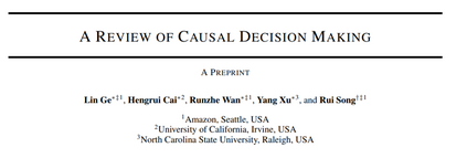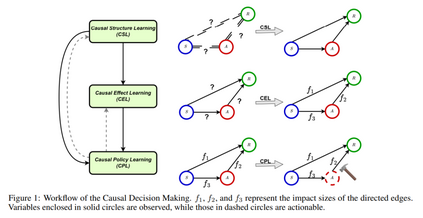 现有研究通常假设决策者具有复杂的先验知识或强因果模型,以进行后续决策。要做出有效且可信的决策,深入理解行动、环境和结果之间的因果关系至关重要。因此,本综述综合了因果决策制定(CDM)领域的最新研究进展,并提供了一个涵盖基础概念、最新进展和实际应用的全面概览。 本研究重点讨论因果视角下决策制定的三大核心任务: