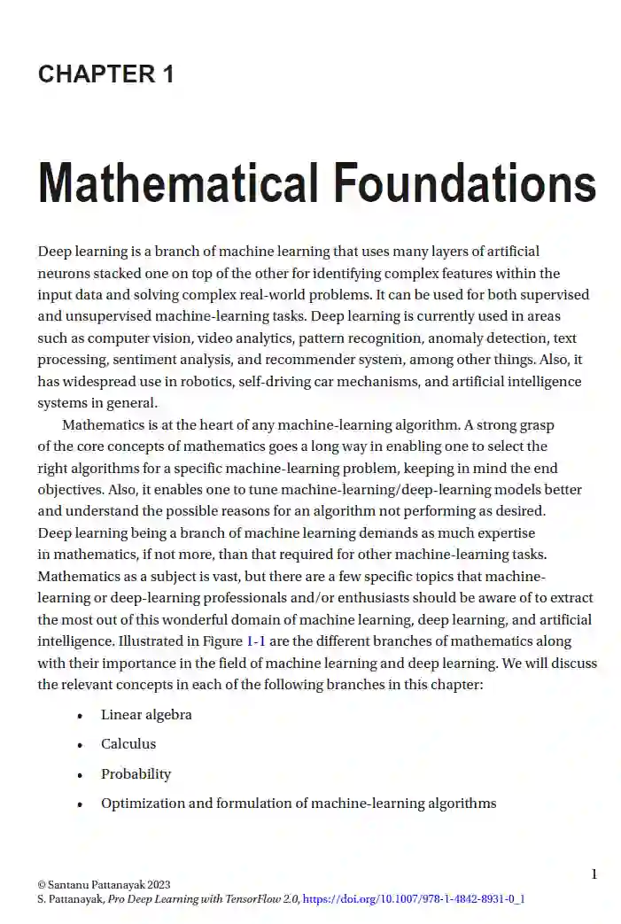 这本书建立在第一版的基础上,更新了章节和最新的代码实现,使其与Tensorflow 2.0保持一致。 https://link.springer.com/book/10.1007/978-1-4842-8931-0 TensorFlow 2.0 Pro Deep Learning with TensorFlow 2.0从深度学习的数学和核心技术基础开始。接下来,您将学习卷积神经网络,包括新的卷积方法,如扩张卷积、深度可分离卷积及其实现。然后,您将了解高级网络架构(如transformer)中的自然语言处理,以及与自然语言处理和一般神经网络相关的各种注意力机制。随着阅读的深入,您将探索反映深度学习方法当前状态的无监督学习框架,例如自编码器和变分自编码器。最后一章涵盖了生成对抗网络及其变体的高级主题,如循环一致性GANs和图神经网络技术,如图注意力网络和GraphSAGE。 读完本书,你将理解深度学习的数学基础和概念,并能够使用所演示的原型来构建新的深度学习应用程序。