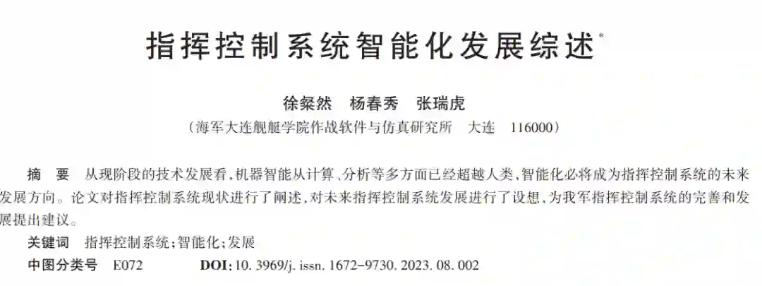 从现阶段的技术发展看,机器智能从计算、分析等多方面已经超越人类,智能化必将成为指挥控制系统的未来 发展方向。论文对指挥控制系统现状进行了阐述,对未来指挥控制系统发展进行了设想,为我军指挥控制系统的完善和发 展提出建议。