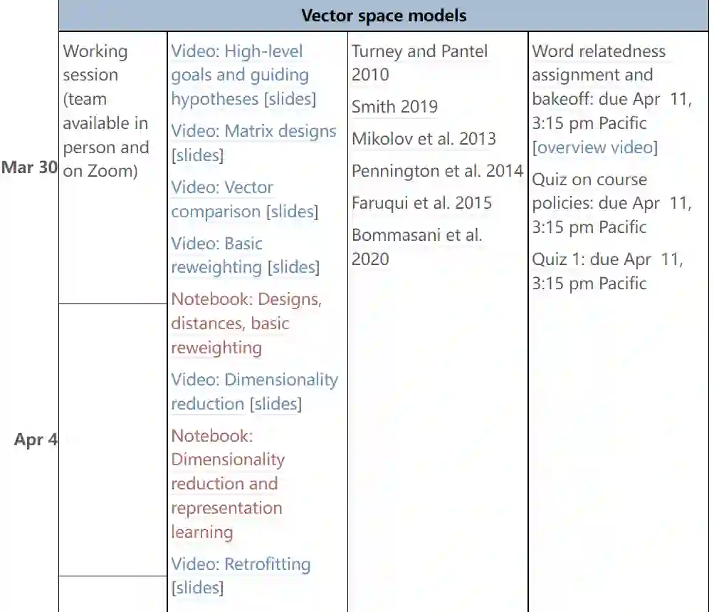 例如在向量空间模型这一部分,讲师提供了 6 篇相关论文作为补充材料进行讲解: