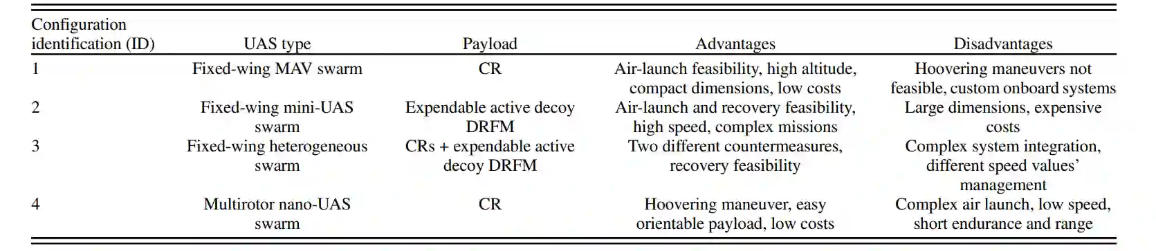 表 1 拟议无人机蜂群配置的主要特点