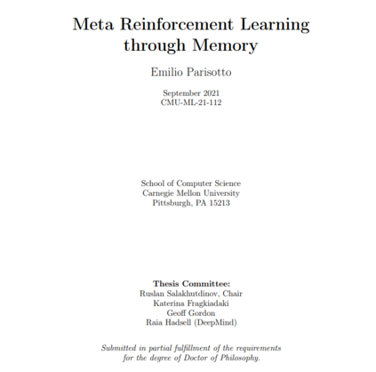 本论文的重点是设计元学习算法,利用记忆作为驱动快速适应新环境的主要机制。具有情景间记忆的元学习是一类元学习方法,利用基于特定环境的整个交互历史的记忆架构来产生策略。因此,在特定任务中驱动策略改进的学习动态被包含在序列模型的计算过程中,本质上把学习算法的设计交给了体系结构。虽然概念简单,但使用情景间记忆的元学习非常有效,仍然是最先进的方法。我们提出并讨论了几种通过记忆进行元学习的技术。