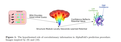 从蛋白质的初级氨基酸序列预测蛋白质的三维结构是结构生物学中一个长期存在的挑战。最近,AlphaFold等方法通过将深度学习技术与相关蛋白质序列多序列比对的共同进化数据相结合,在这项任务上取得了显著的性能。共同进化信息的使用对这些模型的准确性至关重要,没有这些信息,它们的预测性能会大幅下降。然而,在活细胞中,蛋白质的三维结构完全由其原始序列和生物物理定律决定,这些定律使蛋白质折叠成低能量的构型。因此,通过学习一种高度精确的生物物理能量函数,应该可以仅从其原始序列预测蛋白质的结构。我们提供证据表明AlphaFold已经学会了这样一个能量函数,并使用共同进化数据来解决寻找低能构象的全局搜索问题。我们证明,AlphaFold的学习电位功能可以用于以最先进的精确度对候选蛋白质结构的质量进行排序,而无需使用任何共同进化数据。最后,我们提出了一种方法,利用这个势函数来预测蛋白质结构,而不需要MSAs。