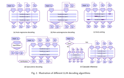 ** 解码算法**。在这一部分中,我们回顾了在图2中展示的优化LLMs推理过程的新颖解码算法。这些算法旨在减少计算复杂度,并提高语言模型推理在生成任务中的总体效率。