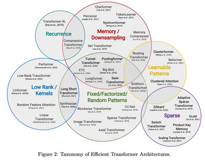 由于其在语言、视觉和强化学习等领域的有效性,Transformer模型架构最近获得了巨大的兴趣。例如,在自然语言处理领域,Transformer 已经成为现代深度学习堆栈中不可或缺的重要组成部分。最近,出现了令人眼花缭乱的“X-former”模型——Reformer、Linformer、Performer、Longformer等等——它们改进了原始Transformer架构,其中许多都围绕计算和内存效率进行了改进。为了帮助热心的研究人员在这一热潮中导航,本文列举了大量深思熟虑的近期高效的“X-former”模型,为跨多个领域的现有工作和模型提供了一个有组织的、全面的概述。