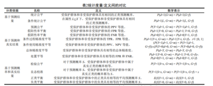 公平性问题一直是哲学、政治、道德、法律等 人文社科领域感兴趣的话题,公平性概念的提出和探讨始于上世纪 60 年代[33, 34]。能够确保每个人都 有平等的机会获得一些利益的行为,称为公平的行 为,或者称这样的行为具有公平性。不能够确保每 个人平等地获得一些利益,使得弱势群体的利益受 到损害的行为,称为不公平的行为,或者称这样的 行为具有不公平性。歧视和偏见是与不公平相关联 的概念,不公平的行为又称为具有偏见的行为或者 歧视的行为。如果机器学习的预测或决策结果能够 确保每个人都有平等的机会获得一些利益,就称该 机器学习具有公平性,并称之为公平机器学习。公 平性研究已经有 50 余年的历史,无论概念定义、 还是度量标准都得到了极大的发展,不同文化具有 不同偏好和观点视角,导致了人们对公平存在多种 不同的理解方式。目前还没有公平性的普适定义, 为了满足各种应用需求,产生了各种各样的公平性 定义和概念。对于歧视类型的了解,有助于各种公 平性概念定义的理解[6]。下面讨论歧视的类型、公 平性定义及度量等。