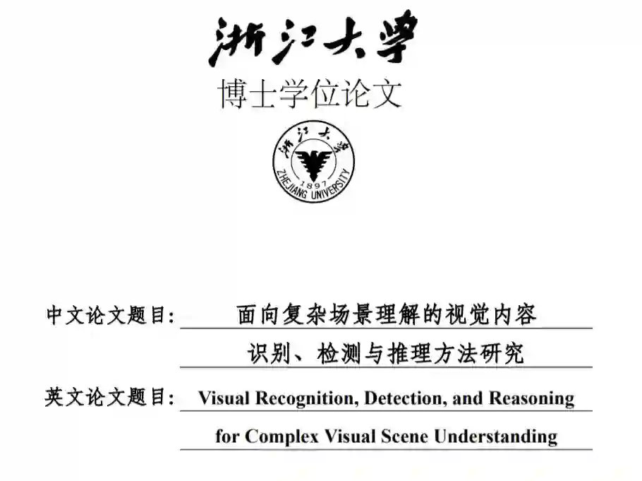 本文将针对四个不同层次的视觉场景理解(物体级别识别、场景级别识别、场 景级别理解和场景级别推理),逐步地对复杂视觉场景中视觉内容的识别、检测和 推理进行研究。本文的关键技术线路主要聚焦于零样本物体分类、图像场景图生 成、图像描述生成、视频片段检索和视觉问答等具体视觉场景理解任务。在此研究 技术路线下,本文主要的研究内容和贡献如下: