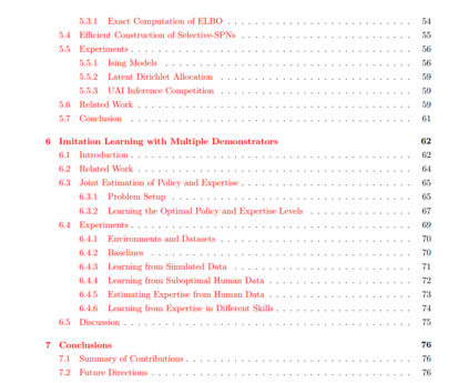 我们将论文组织为两部分,共享同一个总体目标:1) 大型模型的采样,以及2) 大型模型的可行推理。在第一部分,我们研究了预训练模型的采样,特别是改进了从扩散和自回归模型的底层概率分布中抽取样本的技术。在第二部分,我们将注意力转向可行的推理,这涉及估计生成模型的不同量(如期望值、条件似然)的问题。我们展示了改进的架构和算法,以提高任意顺序自回归模型(AO-ARMs)和各种图形模型上的可行推理效果。
