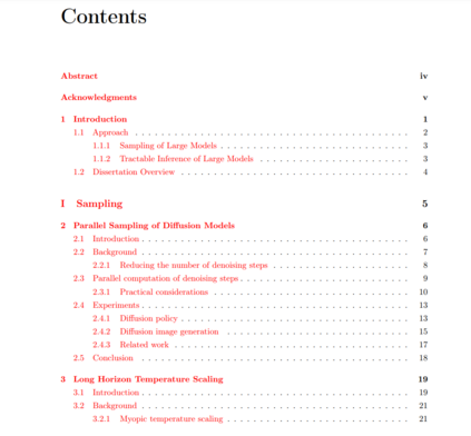 近年来,大规模生成模型的成功极大地改变了机器学习领域。得益于训练数据量、计算力和架构规模的显著增加,大型生成模型的改进拓宽了跨模态可能性的范围,如文本[BMR+20b]、图像[RBL+22]、视频[PX23]、游戏玩耍[FBB+22],并开启了如推理[WWS+22]和上下文中学习[WTB+22]等新能力。 然而,规模的增长带来了计算效率和算法设计的新挑战。较大的模型和更高的数据维度自然更加昂贵,需要更长的训练时间和更慢的推理时间。因此,优化大型模型的效率需求更为迫切。这些挑战导致了围绕高效训练和推理的发展,例如在多个节点上的大规模训练[SPP+19]和基于注意力架构的快速推理[DFE+22]。 在这篇论文中,我们主要关注流水线的推理阶段,包括模型的采样和推理。由于当前模型的大规模设定了计算可行性的更严格边界,因此迫切需要在算法设计上取得进展。例如,需要多个连续前向传递的采样算法变得不便地慢。随维度增长而表现不佳的传统概率推理方法变得日益禁止。在采样过程中需要访问训练数据的框架变得过时。这种模型规模增长的趋势要求概率推理方法的进步,以跟上大型模型的资源限制。 因此,我们的目标是开发足够高效以在大型模型和现代架构上运行,且强大到能处理高维数据和大数据集的推理算法。我们如何设计算法,以推进大型模型的采样和推理的前沿呢?