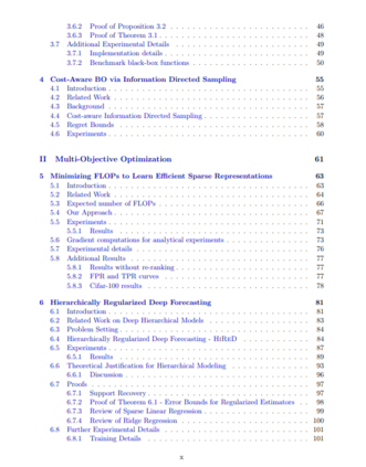 本文的后半部分是关于MOO在两个可微MOO问题上的应用。我们的第一个应用是学习稀疏嵌入,使用神经网络进行快速检索。这里要优化的目标是检索精度和检索速度。我们引入了一种新的稀疏正则化方法,并演示了一种退火策略,与其他方法相比,该策略产生了更好的目标帕累托边界。对于我们的第二个应用,我们考虑了分层时间序列预测的问题,其中多个相关的时间序列被组织成一个层次。我们提出了一种考虑层次结构的方法,同时可扩展到大型层次,并表明它在大多数层次级别上都能提高精度。我们还将其视为一个多目标问题,并演示了跨不同层次的性能权衡。为了总结我们的贡献,在这篇论文中,我们提出了各种类型的黑盒和多目标函数的优化策略,并在合成或基准数据集上进行实验评估。