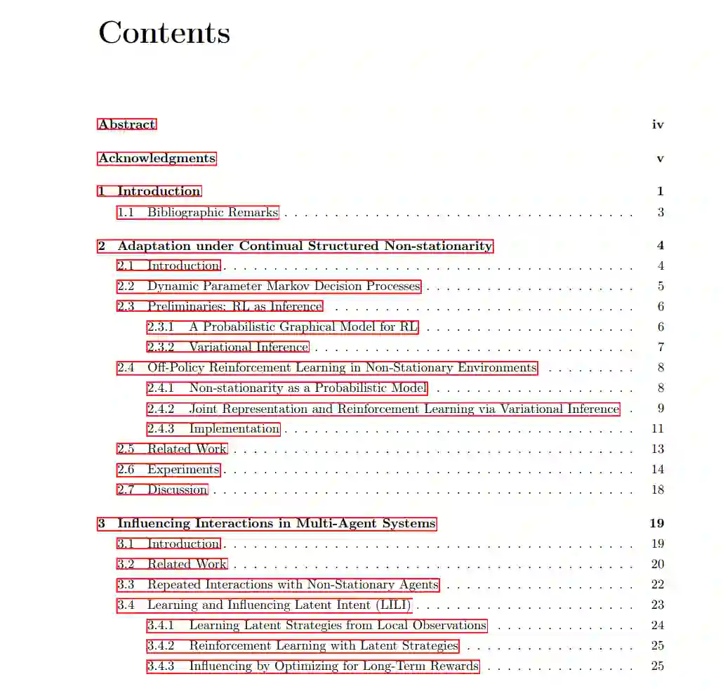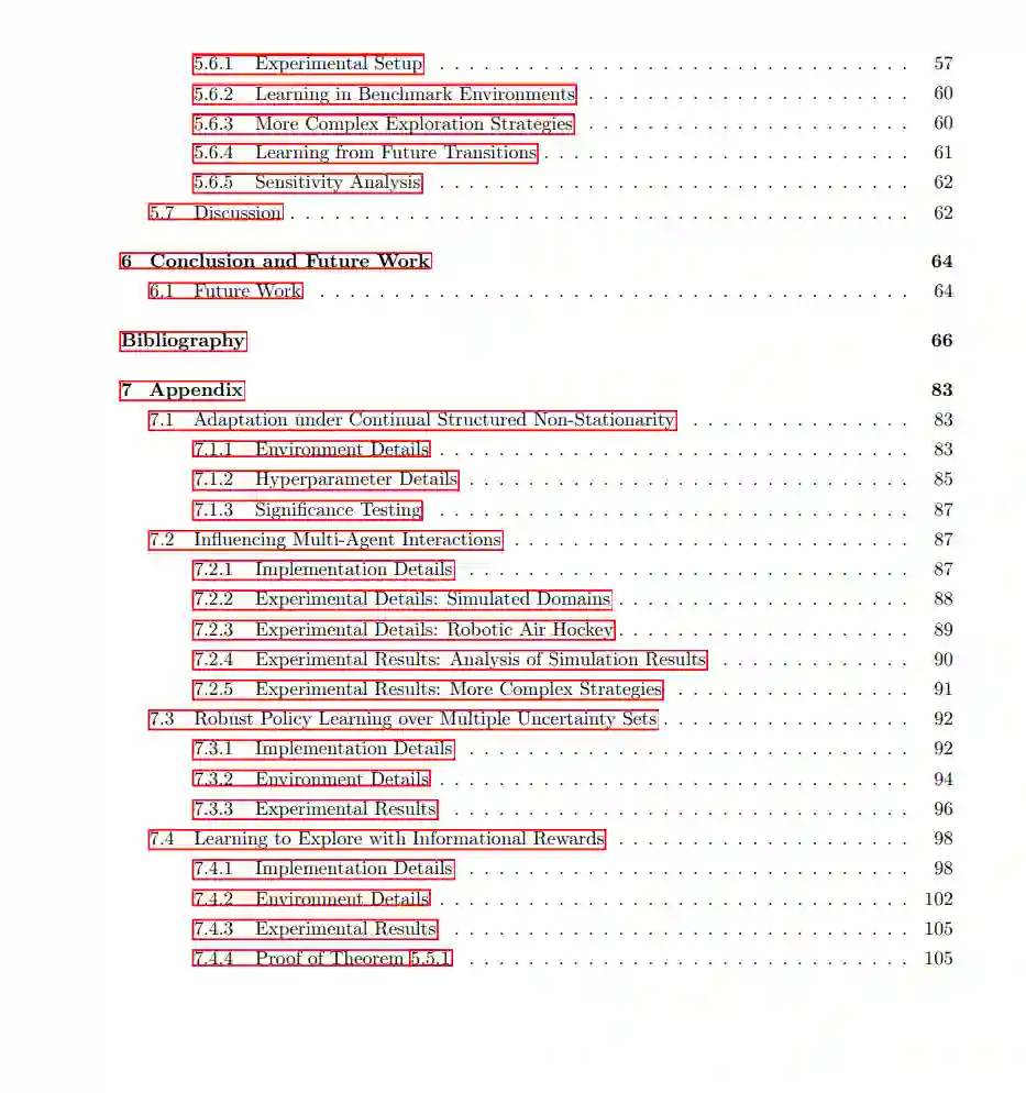 在获得这样的表示后,我们可以设计学习目标来塑造代理的行为。本论文中我们刻画了几种非平稳性类型,如被动性与主动性,以及变化的频率,并利用这些特性设计更有效的策略学习算法。具体来说,利用所学的表示,我们提出了能够使代理(i)预测未来环境特征,从而实现更快速和更稳健的适应,和(ii)影响或塑造这些特征变化,以获得更高的长期奖励的目标。最后,当未来的潜在特征不可预测时,我们设计了能够通过探索环境主动收集有关这些特征信息的代理。