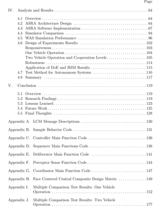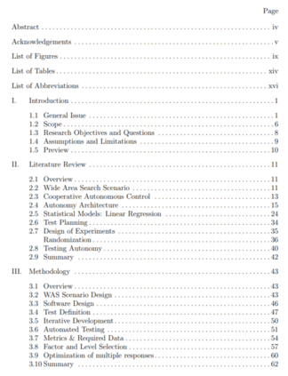由于固有的设计复杂性、无限的测试空间和缺乏自主性的具体措施,自主和协作无人系统的实施和测试具有挑战性。这些挑战限制了美国空军部署和利用这些系统所提供的战术和战略优势能力。这项研究在广域搜索(WAS)场景中实例化了一个自主系统参考架构(ASRA),作为自主和协作系统的快速原型设计和评估的测试平台。该研究旨在提供一个框架,以评估系统实现任务和自主目标的能力,开发可重复使用的自主行为,并开发可重复使用的协作决策算法。对于这项研究和对WAS任务的应用,自主性的衡量标准来自于自主系统的要求:响应性、稳健性和感知的准确性。自主行为,包括结合简单(原子)行为的更复杂行为被开发出来,各种协作决策规则被定义。随后的评估在四个场景中实施了立体实验设计。按照严格的测试计划,测试是在仿真中进行的,实现了自动测试和快速分析。测试结果被用来创建一个响应模型来描述系统,并进行多重响应优化,以确定一个最佳配置,在给定的目标密度下,使搜索面积、检测百分比和感知精度最大化。