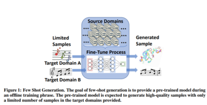 为一个新领域从无到有地训练一个可生成对抗网络(GAN)需要大量的训练数据和几天的训练时间。为此,我们提出了一种基于元学习的GANs领域自适应少镜头生成框架DAWSON。在GANs上应用元学习的一个主要挑战是,由于GANs的无概率特性,通过在开发集上对生成器进行评估来获得生成器的梯度。为了解决这一挑战,我们提出了一个替代的GAN训练过程,它自然地结合了GANs的两步训练过程和元学习算法的两步训练过程。DAWSON是一个即插即用的框架,它支持一个广泛的元学习算法家族和各种具有体系结构变体的GANs。在DAWSON的基础上,我们还提出了音乐日场,这是第一个少镜头的音乐生成模型。我们的实验表明,音乐日场可以快速适应新的领域,只有几十首歌曲从目标领域。我们还表明,DAWSON可以学习生成新的数字只有四个样本在MNIST数据集。我们在PyTorch和Tensorflow中发布了DAWSON的源代码实现,生成了两种类型的音乐样本和快闪视频。