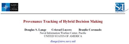 记录一个系统或集成系统内所有信息变化的出处,这提供了关于正在做出的决定和促使这些决定的重要信息。从取证的角度来看,这可以用来重新创建决策环境。然而,出处也可以为其他两个重要功能服务。收集的数据可以支持组件的整合,而生成的图形数据结构可以通过解释、总结和告警来支持操作员进行态势感知。混合战争将必然汇集不同决策支持能力,因为决策者必须在多个战争领域运作。自主代理将可能在计划和执行过程中发挥作用,有时能够在没有人类干预的情况下做出决定,但人类决策者必须意识到这一点。事实证明,证据图可以转化为修辞结构图(RSG),使代理能够用自然语言甚至多模态交流,向人类解释他们的行动。证据还被证明可以加强对计划执行监控,并可用于向人类或自主代理提供通知,当计划中使用的信息发生变化时,可能需要重新考虑计划。随着我们朝着智能机器在复杂环境中支持人类决策者团队的方向发展,跟踪决策及其输入的需要变得至关重要。