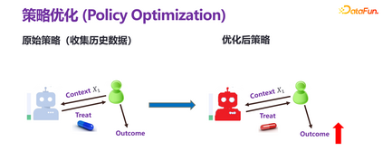 策略优化和前面两种的预测评估是有本质性区别的。预测评估都是提前给定一个策略(policy)或者个性化的干预(individual treatment),去预估最终的结果。策略优化,也叫策略学习,目标只有一个结果变大。比如收益要增长,应该施加什么样的干预。